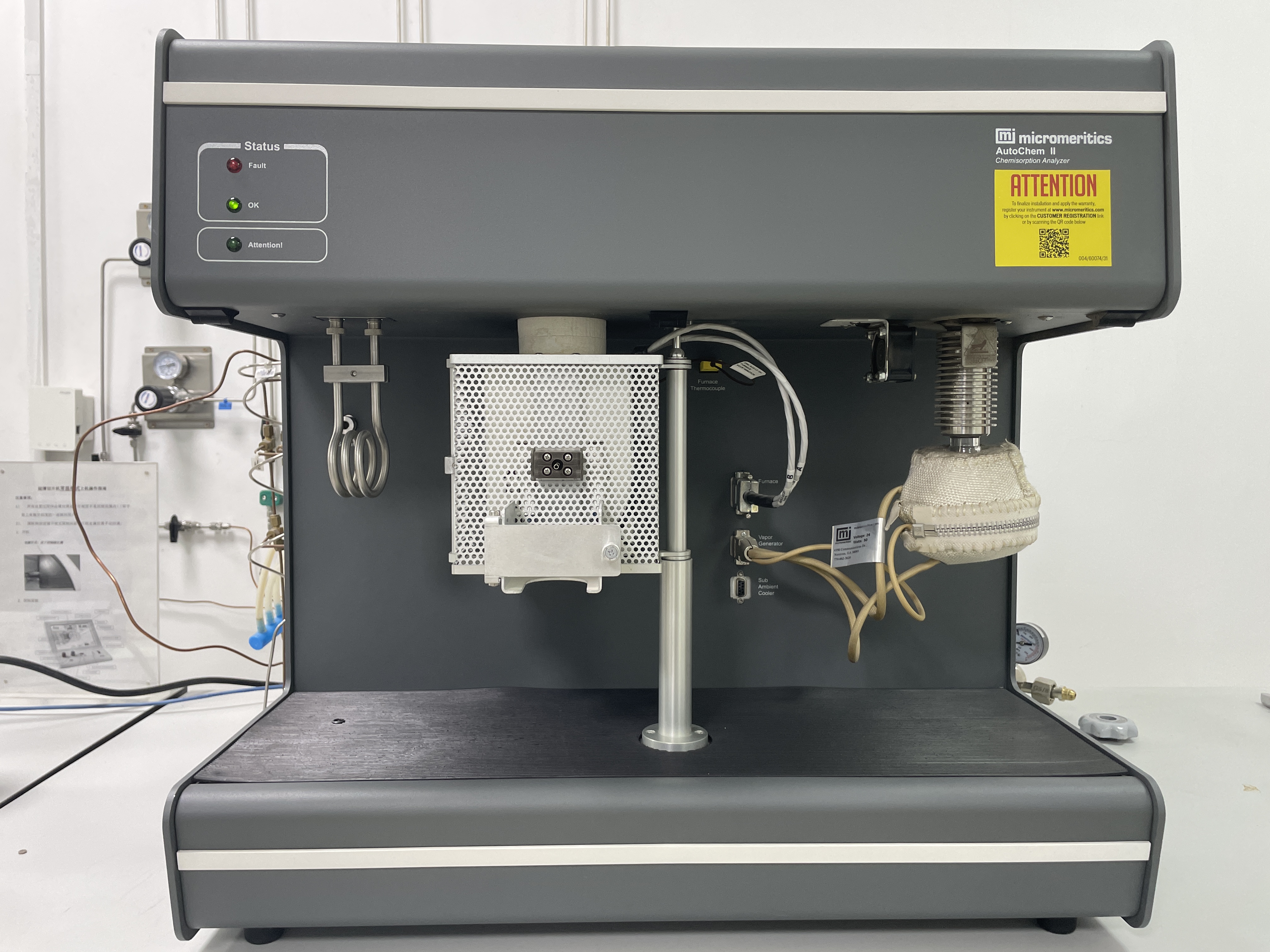 仪器用于材料化学吸附特性的分析研究,采用热导检测器,可以进行TPD(程序升温脱附),TPR(程序升温还原),脉冲化学吸附等
