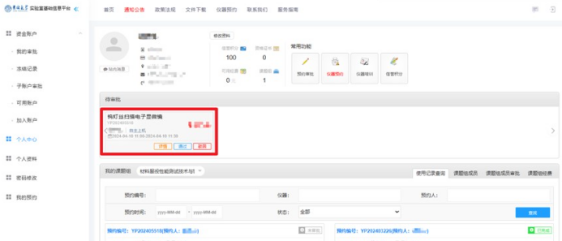 统一认证的账户密码登陆后进入仪器预约页面。