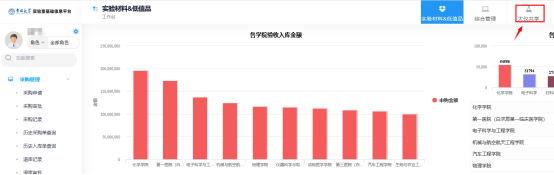实验室综合管理平台,右上角点击“大仪共享”模块。